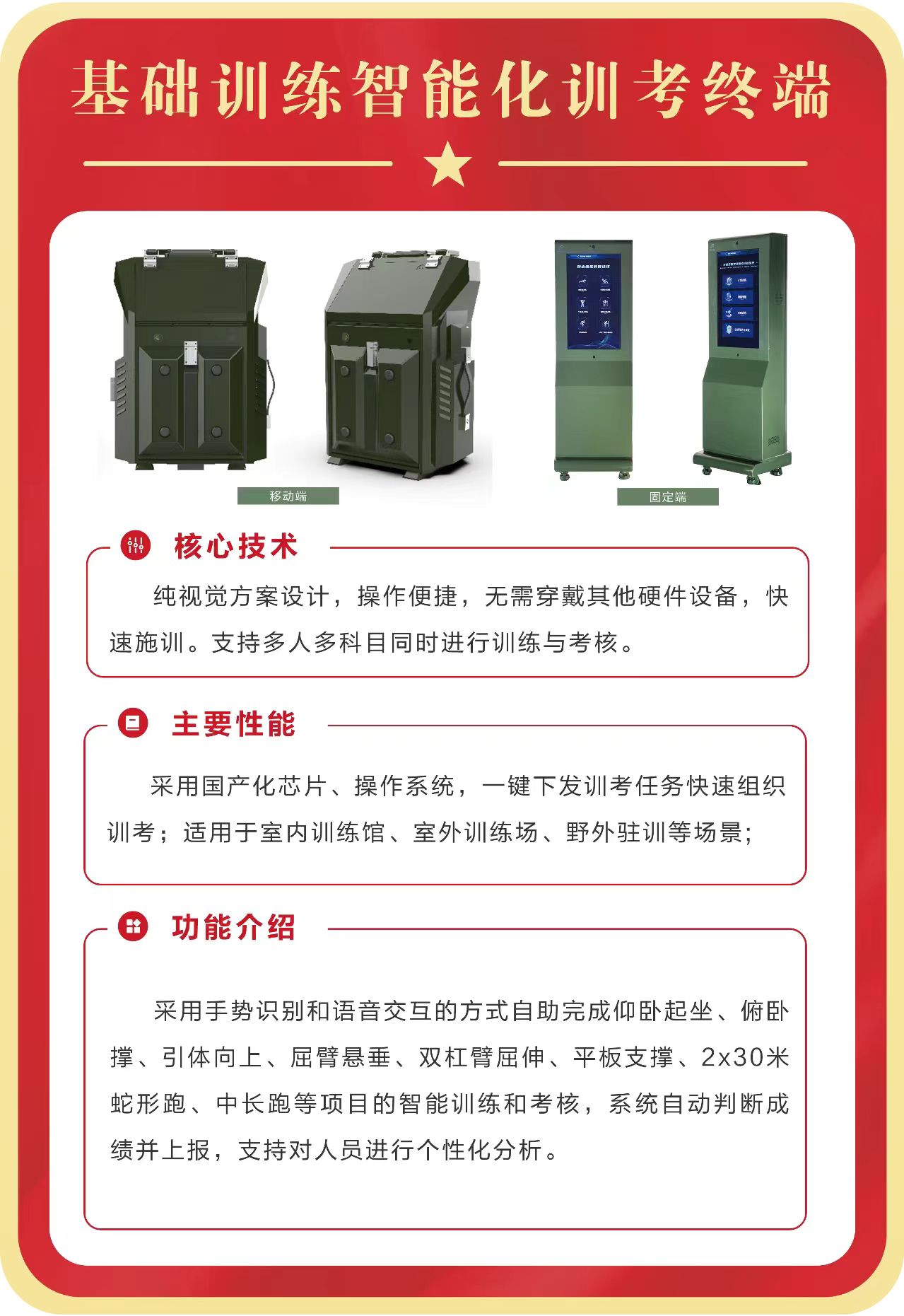 2024年1月,全国某部队现代化装备展在成都举行,中能鸿达作为智能训练考核智能设备厂家,携自主研发的体能训练考核智能移动端系统亮相展会。展会期间,多名领导、官兵亲临展台体验,对系统“AI赋能、科学高效、计划定制、自主可控”的核心优势给予高度评价。