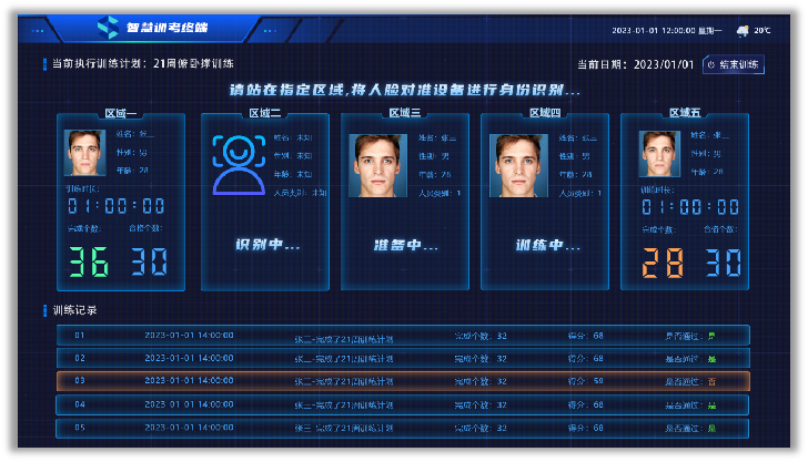 - 1/3/5人多模式并行考核,外接摄像头扩展动作捕捉视角
